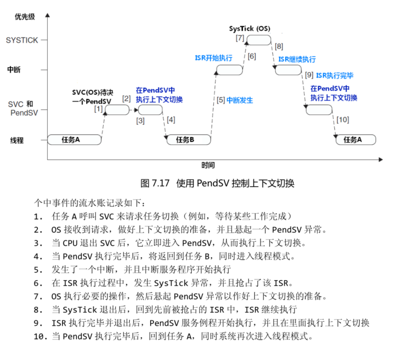 PendSV (Pendable Service Call可挂起的系统调用)的典型使用场合是在上下文切换时(在不同任务之间切换)