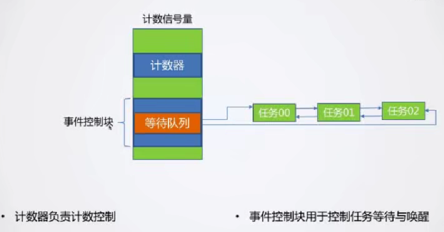 计数信号量是一个结构体,包含计数部分(当前计数和最大计数)和事件控制块