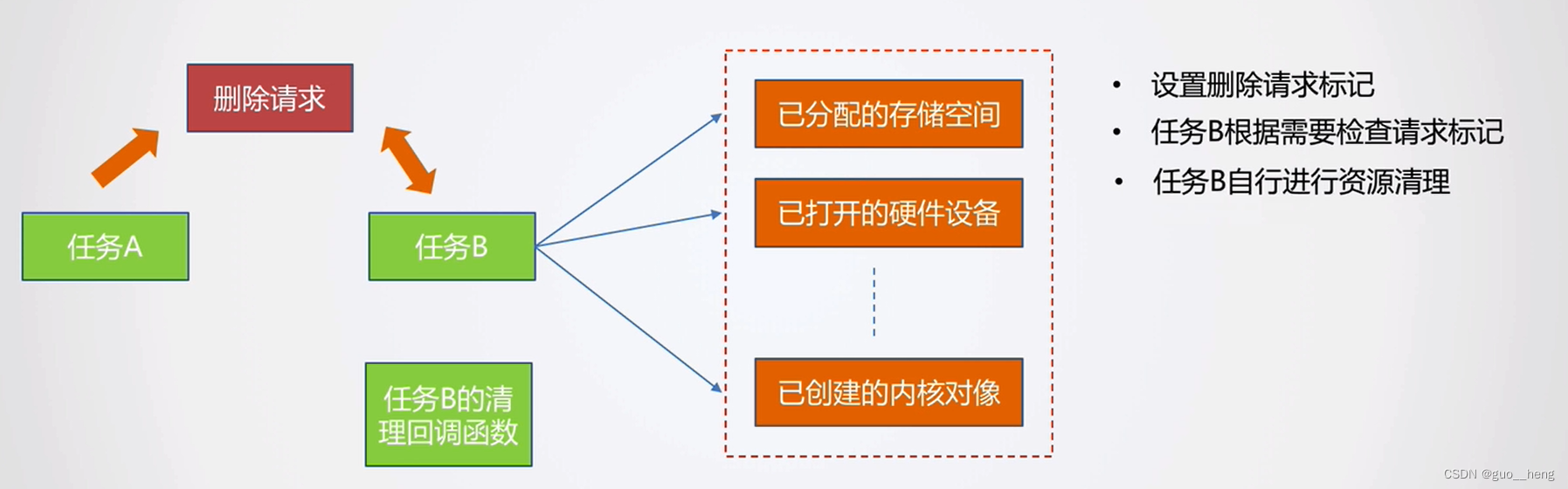 tTaskIsRequestedDelete是处于任务或者定时器之类的周期运行中;重点集中在tTaskDeleteSelf上,这个函数是放在任务中,这样状态处于就绪态,操作更为简单,任务也必定需要切换为其他任务