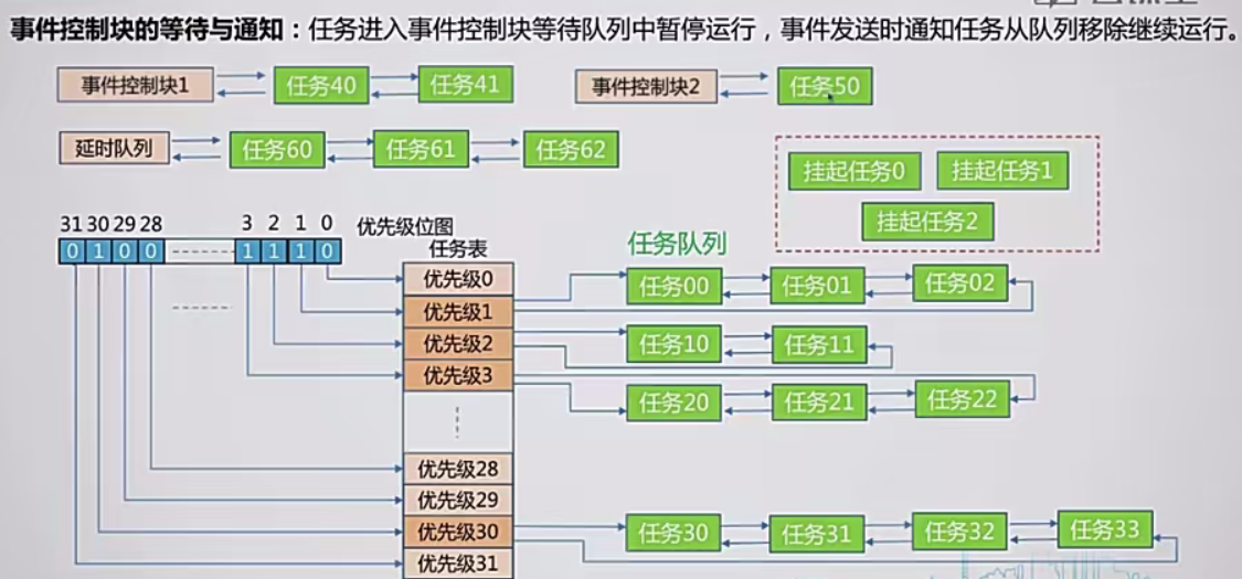 这里相比之前,又引入了新的任务状态,也就是等待状态,由事件控制块管理