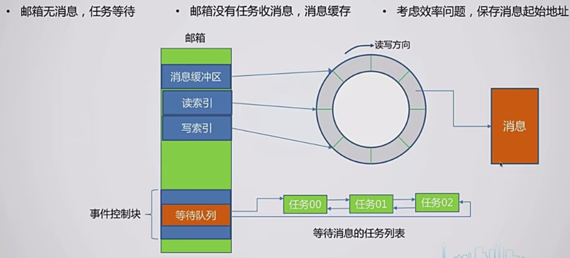 由于邮箱在功能上也有等待,所以底层也有计数信号量,其余无需赘述